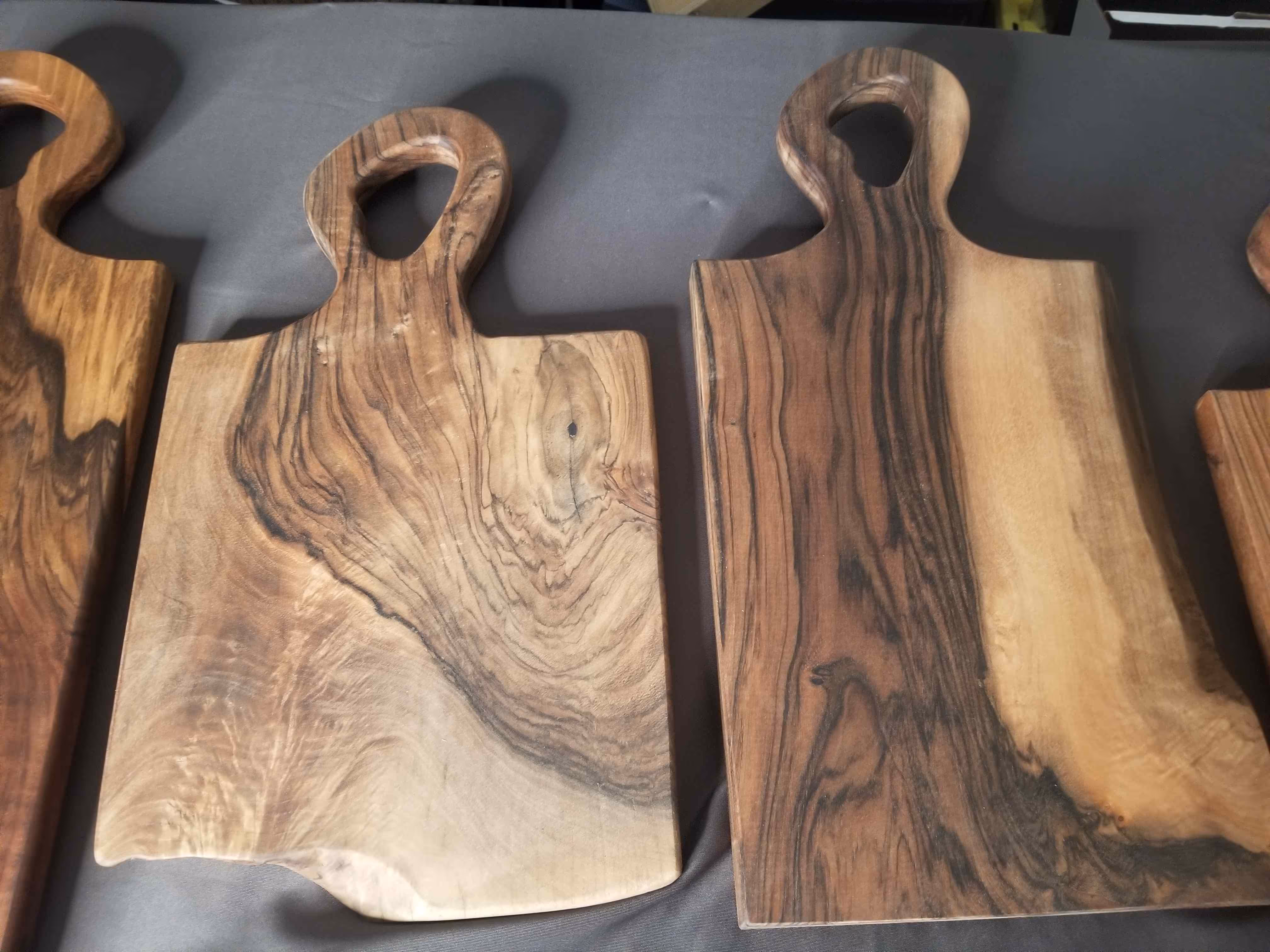 Durable, handcrafted cutting boards, designed for both culinary work and beautiful presentation. Each board is meticulously crafted from reclaimed local hardwoods, showcasing the unique grain and character of the wood. Built to withstand daily use, these boards are as much a functional kitchen essential as they are a lasting piece of art.